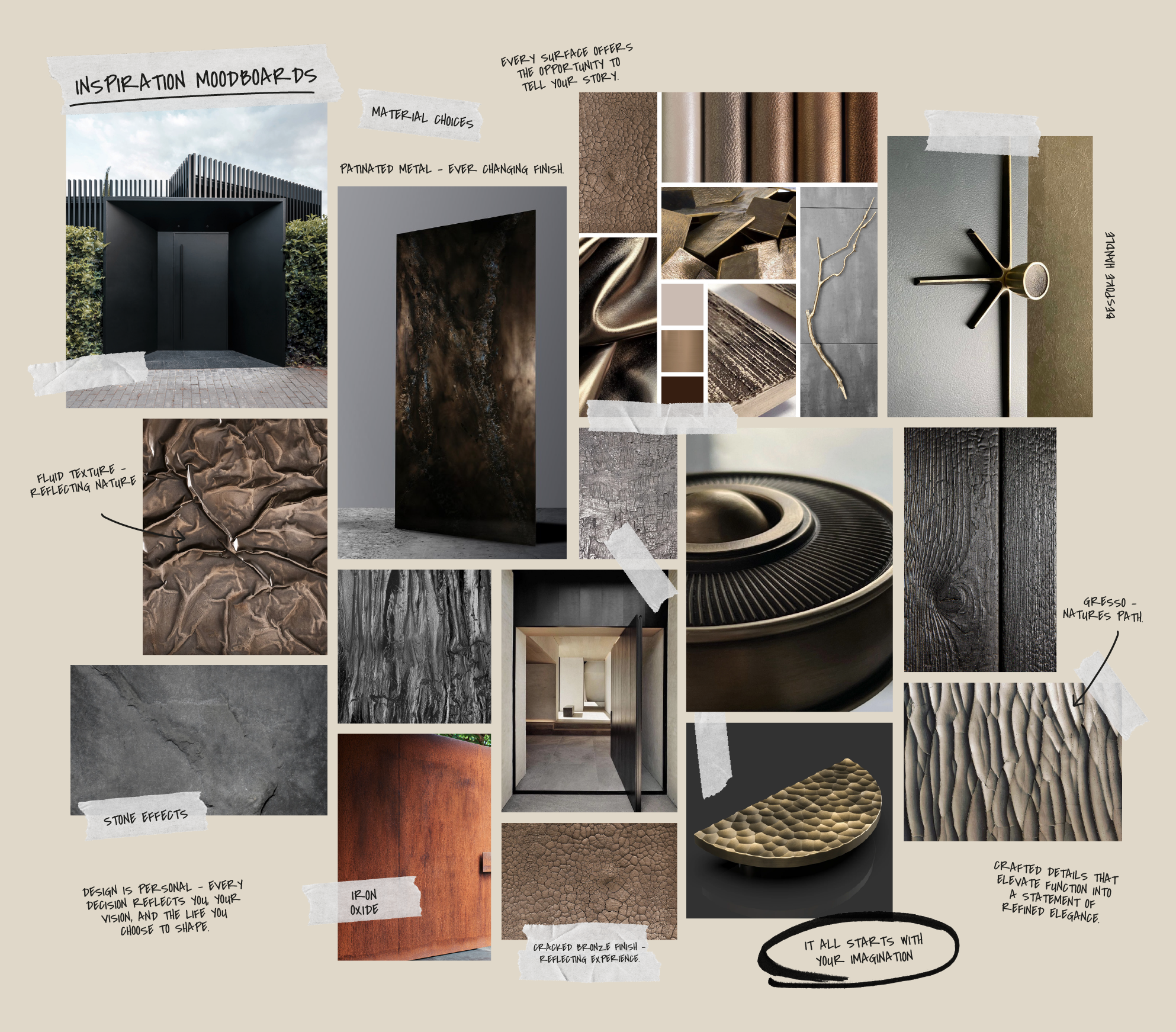 Every detail matters. Our bespoke hardware and specialist finishes are meticulously sourced to complement each PORTTALS entrance door, enhancing both tactility and visual harmony. From hand-finished metals to custom patinas and textures, these elements transform an entrance into a truly unique expression of craftsmanship and individuality.